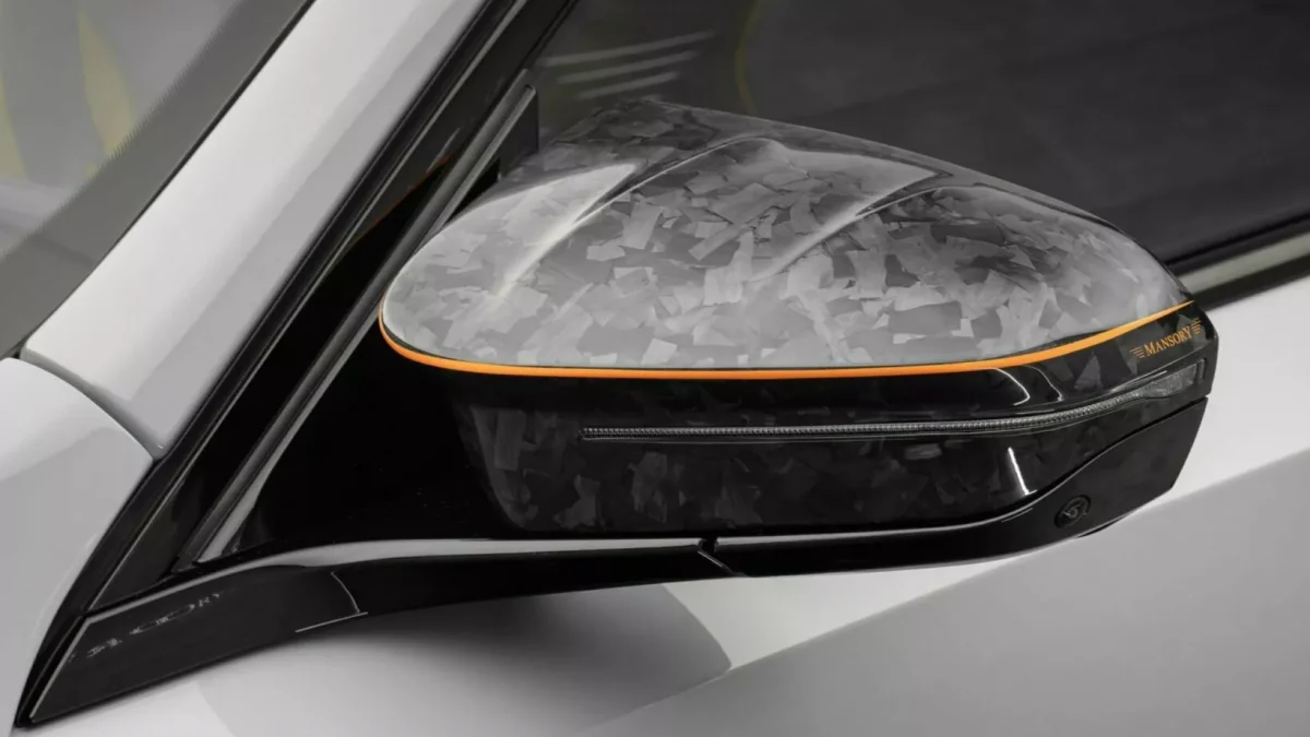 نمای جانبی خودرو نیز از تغییرات بی‌نصیب نمانده است. منصوری با نصب هواکش‌های فیبرکربنی جانبی، رکاب‌هایی تیز و مدرن، و قاب‌هایی از جنس فیبرکربن بر روی آینه‌ها، روحی تازه به این سدان قدرتمند دمیده است. برای افرادی که عاشق جلوه‌های منحصر به فرد هستند، نشان‌های شاخص منصوری روی گلگیرهای جلو جلب توجه می‌کند؛ این نشان‌ها تا اندازه‌ای تداعی‌گر سبک طراحی فراری هستند و منشأ الهام آن‌ها را به خوبی نشان می‌دهند.