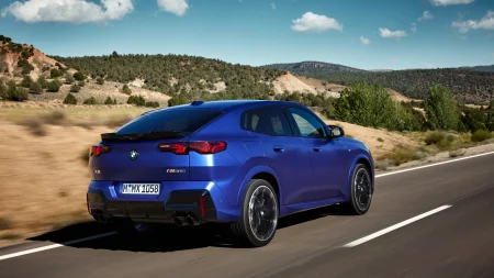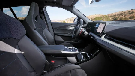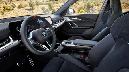در فضای داخلی این خودرو نیز ترکیبی از طراحی مدرن، مواد اولیه باکیفیت و فناوریهای پیشرفته به چشم میخورد. صندلیهای M با روکش چرمی و قابلیت تنظیم برقی بههمراه حافظه، علاوه بر راحتی، حسی لوکس به کابین بخشیدهاند. نمایشگر دیجیتال خمیده، سیستم تهویه مطبوع اتوماتیک، سقف پانورامای بزرگ، نورپردازی داخلی، استارت بدون کلید، قابلیت Auto Hold، آینههای جانبی گرمکندار، سنسورهای پارک و سنسور فشار باد تایرها نیز در هر دو مدل وجود دارد. استفاده از کیت بدنه M Sport نیز جلوهای اسپرتتر و پویاتر به ظاهر X2 داده و ماهیت دینامیک آن را بهخوبی به نمایش میگذارد.