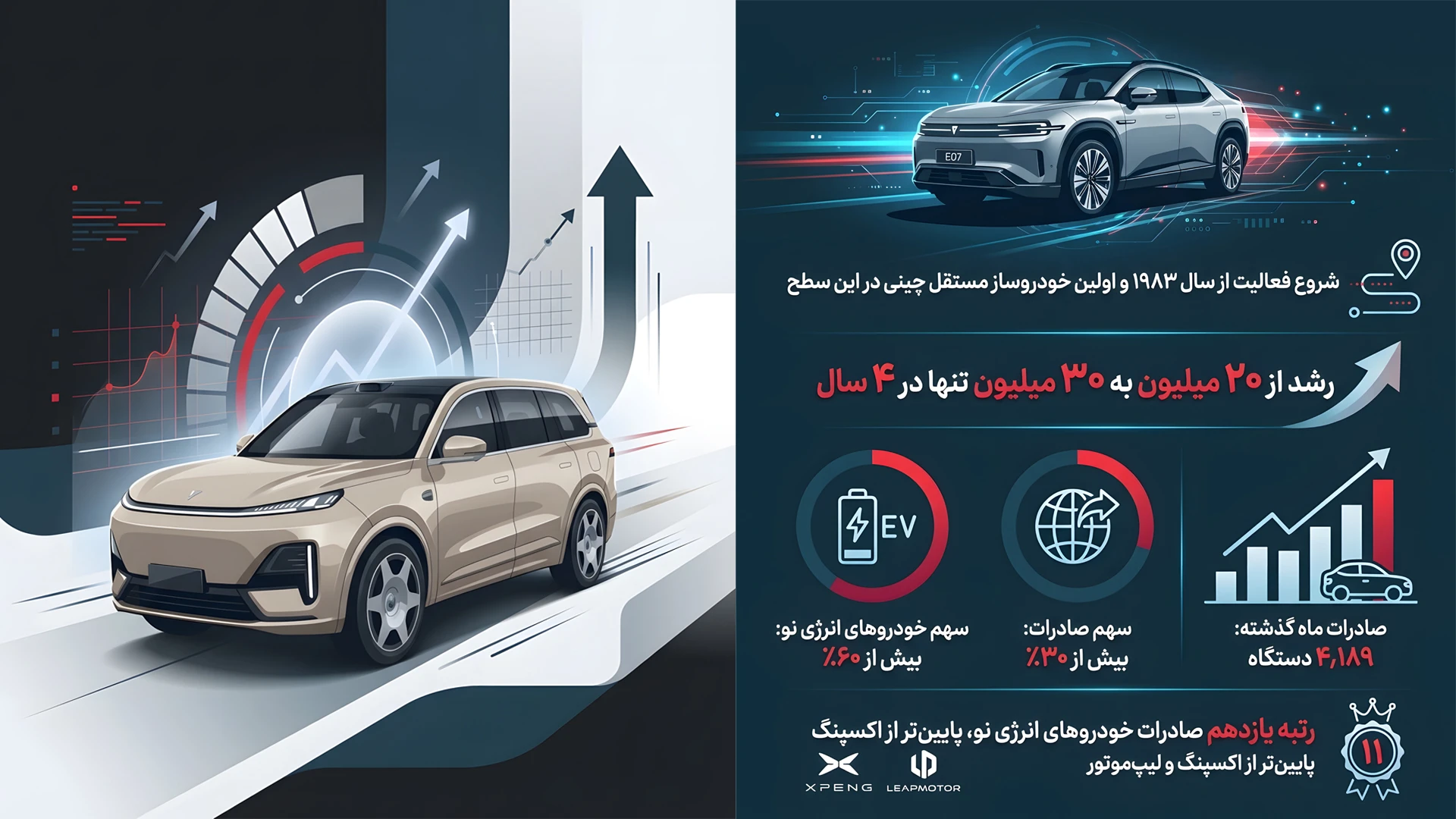 با وجود این رشد، جایگاه چانگان در صادرات خودروهای انرژی نو هنوز فاصله قابلتوجهی با برخی رقبا دارد. این شرکت در ماه گذشته تنها ۴ هزار و ۱۸۹ دستگاه خودروی انرژی نو صادر کرد و در رتبه یازدهم صادرکنندگان این بخش قرار گرفت؛ رتبهای پایینتر از برخی استارتاپهای فعال در بازار خودروهای برقی مانند ایکس پنگ و لیپموتور.