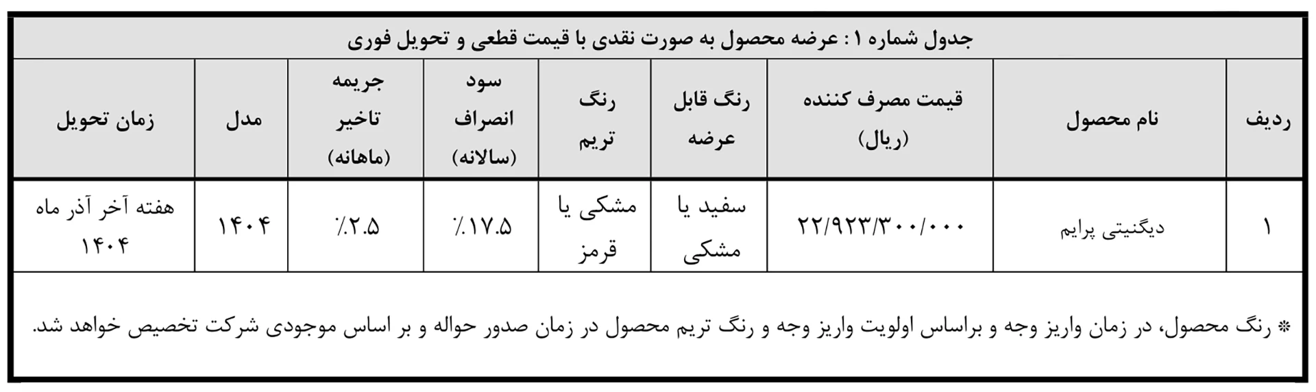 شرایط فروش دیگنیتی پرایم – ویژه مهر 1404