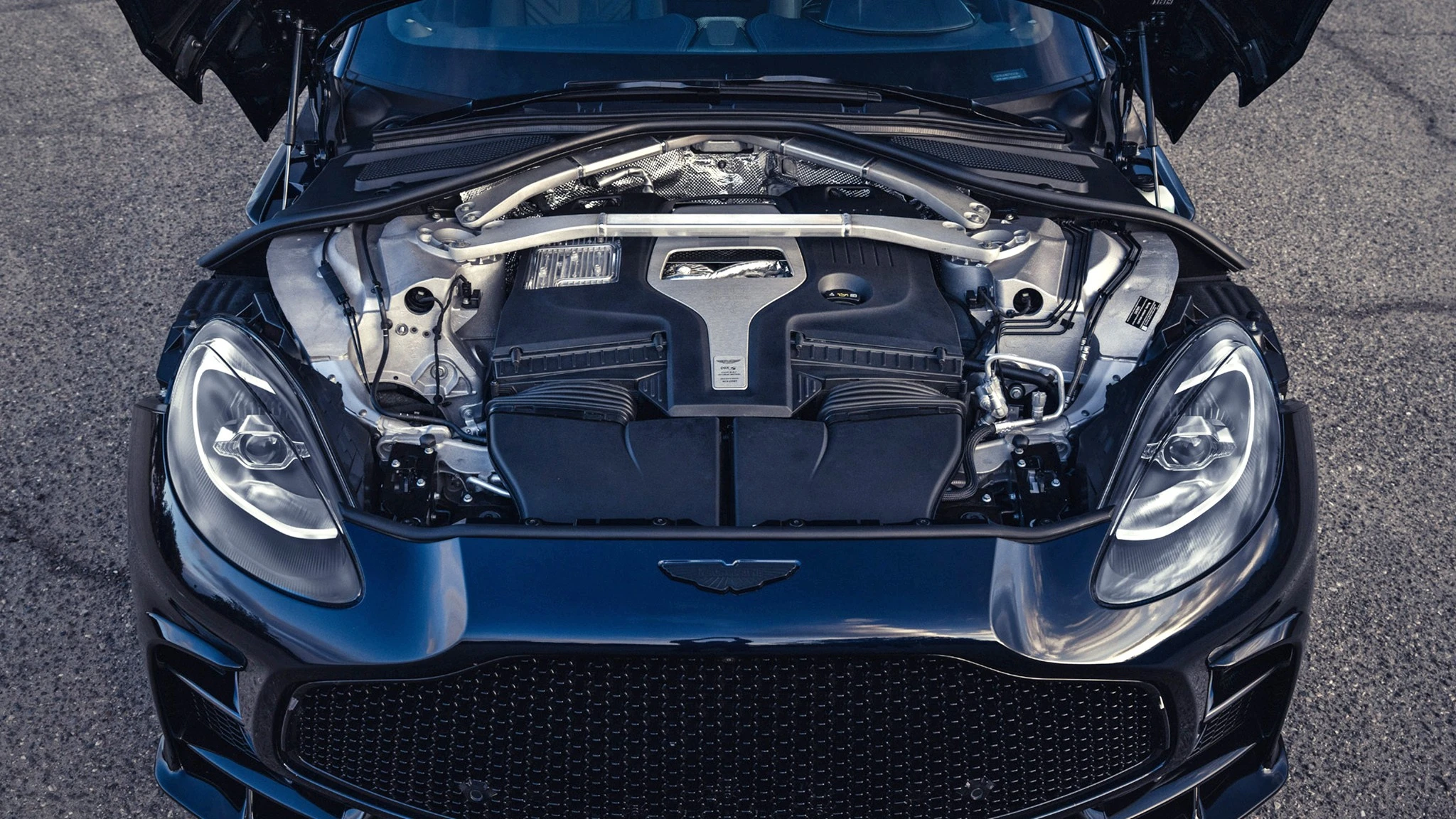 نسخه جدید DBX نسبت به مدل DBX707 قدرت بیشتری دارد. پیشرانه هشت سیلندر V شکل با حجم چهار لیتر و مجهز به دو توربوشارژر که با همکاری مرسدس AMG توسعه یافته است، توان ۷۱۷ اسب بخار و گشتاور ۹۰۰ نیوتنمتر تولید میکند که نسبت به نسخه ۷۰۷ ده اسب بخار بیشتر است. استفاده از قطعات سبکوزنتر مانند سقف فیبرکربنی اختیاری که بزرگترین قطعه فیبرکربن ساخته شده توسط استون محسوب میشود، رینگهای ۲۳ اینچی منیزیمی و دیگر قطعات فیبرکربنی، بیش از ۴۵ کیلوگرم وزن خودرو را کاهش میدهد. فرمان خودرو نیز چهار درصد تیزتر از قبل شده و سیستم تعلیق بادی و کمکفنرهای بهبود یافته نسخه ۷۰۷ همچنان حفظ شدهاند که باعث کنترل بهتر حرکات بدنه میشوند. همچنین گیربکس ۹ سرعته اتوماتیک بازتنظیم شده تا در حالتهای اسپرت و اسپرت پلاس معکوسکشیهای پرشتابتری انجام دهد.