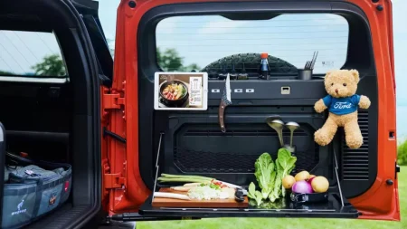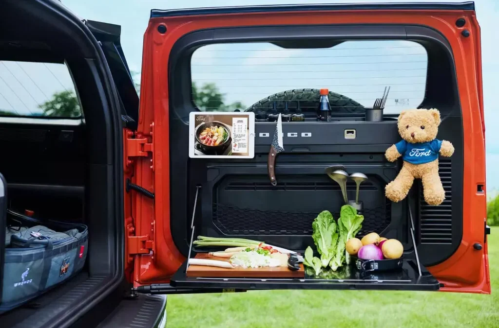 در بخش عقب خودرو، تم کمپینگ همچنان حفظ شده است. برانکو بیسکمپ به سامانهای مجهز است که فورد آن را «آشپزخانه کوهستانی» مینامد که روی درب عقب خودرو تعبیه شده است. این مجموعه شامل یک میز تاشو، نوار مغناطیسی برای نگهداری چاقو و قاشقچنگال، جا لیوان و درببطریبازکن یکپارچه است. فورد این محصول را نخستین شاسیبلند آفرودی ویژه کمپینگ خود میداند و اعلام کرده است که خریداران میتوانند با پرداخت تنها ۱,۰۰۰ یوان (حدود ۱۴۰ دلار) بیعانه، معادل ۱۲,۰۰۰ یوان (حدود ۱,۶۸۵ دلار) تجهیزات رایگان دریافت کنند.