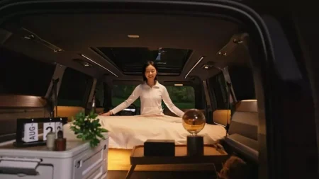 این بسته شامل یک سقف شیشهای پانوراماست که قابلیت باز شدن به میزان ۳۶۰ میلیمتر (۱۴.۲ اینچ) به سمت بالا را دارد و فضای بیشتری در بالای صندلیهای ردیف دوم ایجاد میکند. این ویژگی، با وجود ظاهر ساده، به دلیل امکان خواباندن کامل صندلیهای جلو و کاهش ارتفاع پشتسریها با فشار یک دکمه، راحتی بیشتری فراهم میآورد. همچنین صندلیهای ردیف دوم نیز قابلیت خواباندن دارند و با استفاده از یک تشک بادی با برند برانکو، فضای دو ردیف به طور کامل برای استراحت یا خواب پوشانده میشود.