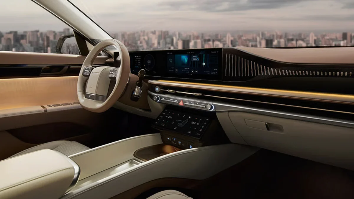 کابین آزرا ۲۰۲۶ برای راحتی کامل سرنشینان طراحی شده و از مواد با کیفیت مانند چرم و تزئینات آلومینیومی یا چوبی استفاده می‌کند. فضای داخلی جادار است و تمرکز ویژه‌ای روی راحتی سرنشینان عقب شده است. صندلی‌ها چرمی بوده و دارای گرم‌کن و سردکن جلو و عقب هستند. صفحه نمایش لمسی بزرگ، پشتیبانی از Apple CarPlay و Android Auto، نمایشگر هدآپ، تهویه چند ناحیه‌ای اتوماتیک، روشنایی محیطی قابل تنظیم و فضای پای مناسب برای سرنشینان عقب باعث می‌شوند کابین این خودرو حس یک خودروی لوکس واقعی را منتقل کند.