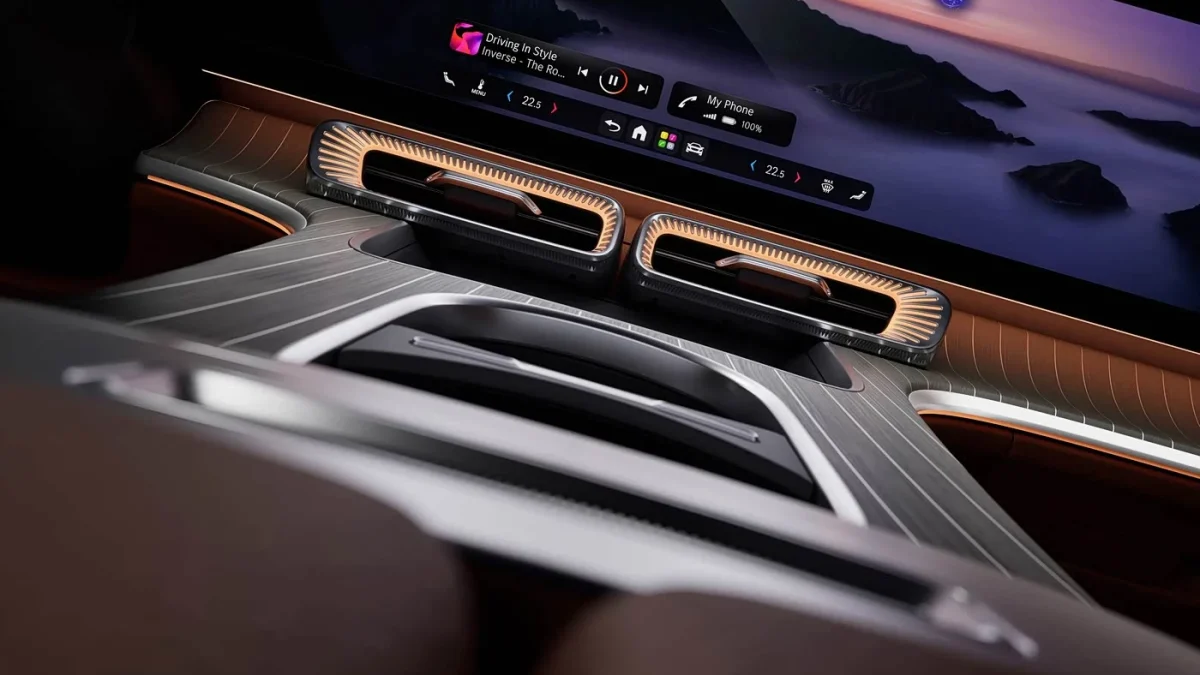 بخش بالایی کنسول مرکزی دو پد شارژ بی‌سیم برای گوشی‌های هوشمند را در خود جای داده که با یک جفت دریچه تهویه مرکزی از نمایشگر جدا شده‌اند. زیر این بخش یک نوار باریک دکمه‌های فیزیکی و یک پیچ کنترل حجم صدا قرار دارد که نمونه دیگر آن روی شاخه سمت راست فرمان تعبیه شده است.