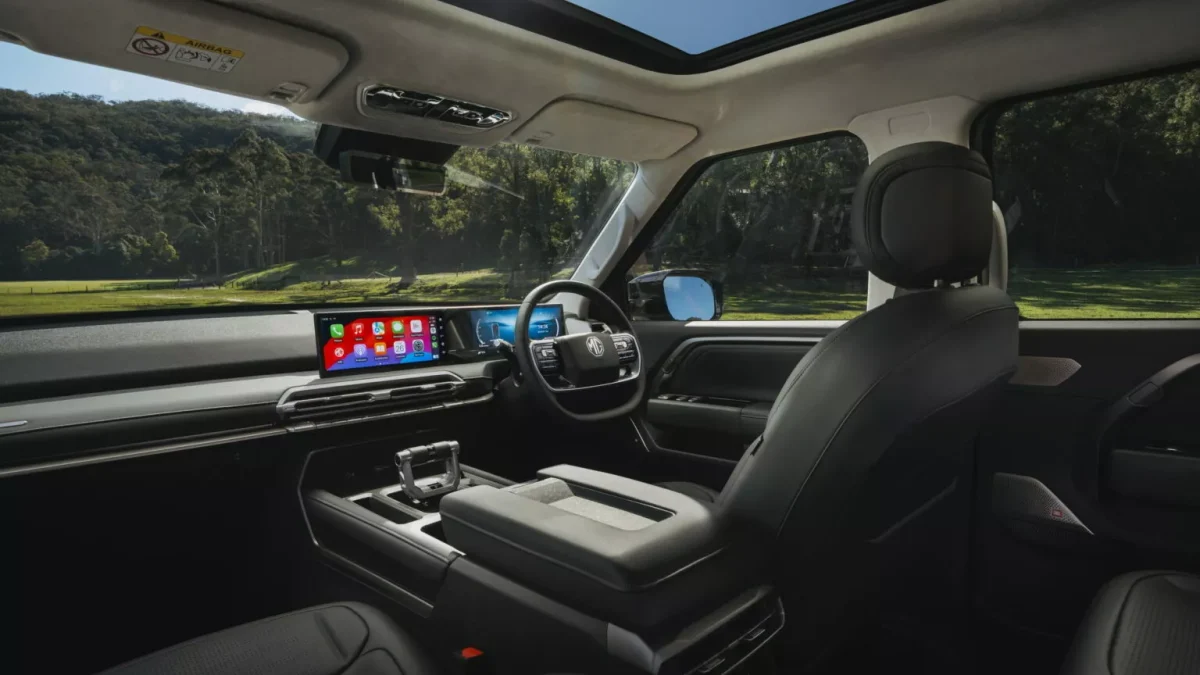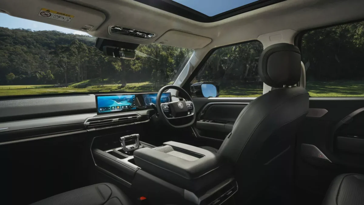 یکی دیگر از ویژگیهای هوشمندانه، سیستم MG Smart Hatch است فضای بار را به طور قابل توجهی گسترش میدهد. این سیستم تنها در نسخهٔ پرچمدار Explore Pro ارائه میشود. در داخل کابین، جلب توجهکنندهترین بخش اهرم دندهای است که از کابین هواپیما الهام گرفته و طراحی منحصربهفرد MG را دارد. سایر قسمتهای کابین مشابه ترون 9 است و شامل کابین دیجیتال با دو نمایشگر ۱۲.۳ اینچی میشود. نسخهٔ Explore Pro امکانات لوکس بیشتری ارائه میدهد؛ از جمله صندلیهای جلو با گرمکن و تهویه و مجهز به ماساژور، صندلیهای عقب جانبی با گرمکن، سیستم صوتی JBL با هشت بلندگو، سقف شیشهای پانوراما و پوشش چرمی کابین همراه با سقف داخلی جیر.