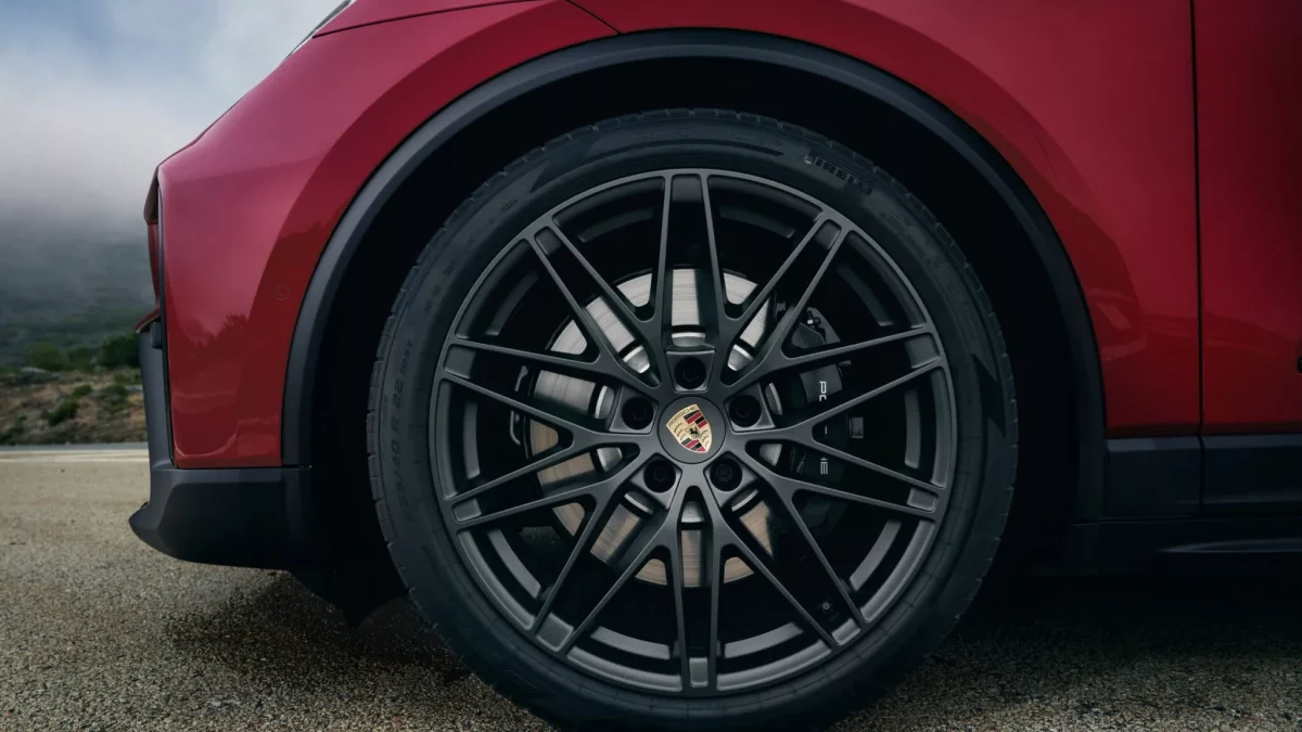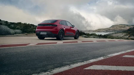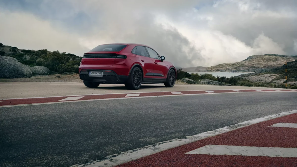 در نمای بیرونی، ماکان GTS از سپر جلویی مدل توربو بهره میبرد و با قطعات تزئینی مشکی در ورودیهای هوای پایین و کناری تکمیل شده است. چراغهای جلوی ماتریسی LED با پوشش دودی همراه با رکابهای جانبی جدید، دیفیوزر اختصاصی عقب و زائده مشکی روی اسپویلر فعال عقب، ظاهر خودرو را تهاجمیتر و متمایزتر کردهاند.