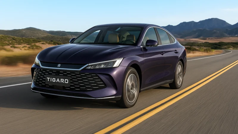 بی وای دی چین L وارداتی تیگارد موتور یک سدان پلاگین هیبریدی پیشرفته محصول کشور چین است که با طراحی مدرن و تکنولوژی بهروز، جایگاه خاصی در بازار خودروهای هیبریدی بهدست آورده است. این خودرو ابعادی به طول ۴۸۳۰ میلیمتر، عرض ۱۹۰۰ میلیمتر و ارتفاع ۱۴۹۵ میلیمتر دارد و فاصله محوری آن ۲۷۹۰ میلیمتر و فاصله بین چرخهای جلو و عقب ۱۶۲۰ میلیمتر است. تایرها با سایز ۲۲۵/۵۵R۱۷ و رینگهای آلومینیومی دو رنگ، ظاهر اسپرتی به خودرو میبخشند. قلب تپنده چین L را یک موتور بنزینی 1.5 لیتری و یک موتور برقی سنکرون با آهنربای دائمی (PMSM) تشکیل میدهد؛ موتور بنزینی قدرت ۱۰۱ اسببخار و گشتاور ۱۲۶ نیوتنمتر را ارائه میدهد و موتور برقی با قدرت ۲۱۸ اسببخار و گشتاور ۲۶۰ نیوتنمتر کمک میکند. سیستم هیبریدی این خودرو با باتری پیشرفته Plug-in Hybrid Power Blade و گیربکس E-CVT (EHS)، برد رانندگی تمام برقی ۱۲۰ کیلومتر و مصرف سوخت ۳.۰۸ لیتر در هر ۱۰۰ کیلومتر (طبق استاندارد NEDC) را فراهم میکند. ظرفیت باتری ۱۵.۸۷ کیلوواتساعت و شتاب ۰ تا ۱۰۰ کیلومتر تنها ۷.۵ ثانیه است. ترمزهای جلو و عقب دیسکی (جلو خنکشونده) و سیستم تعلیق جلوی مکفرسون و عقب مستقل چندمیلهای عملکردی نرم و ایمن ارائه میکنند.