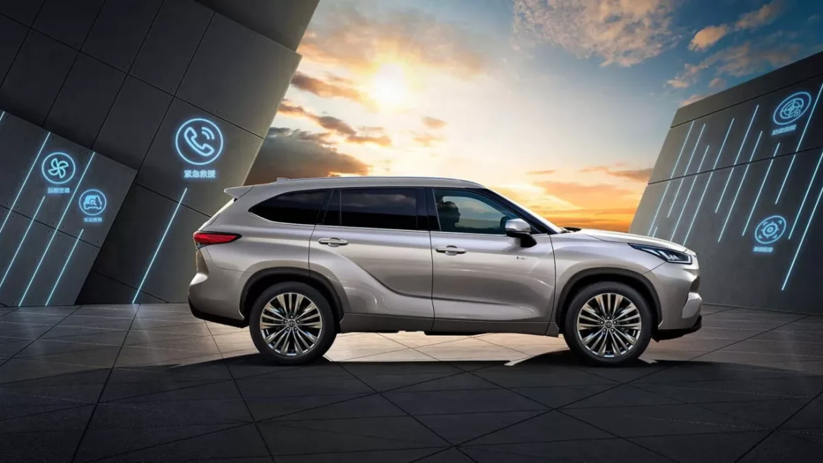 در نسخه عرضهشده در چین که توسط GAC تویوتا تولید میشود، ظاهر بیرونی تقریباً همانند گذشته باقی مانده است. تفاوتها زمانی آشکار میشود که وارد کابین خودرو شوید. از این پس تمامی تیپهای هایلندر به نمایشگر ۱۵.۶ اینچی سیستم اطلاعات و سرگرمی مجهز هستند که جایگزین نمایشگرهای ۱۰.۲۵ و ۱۲.۳ اینچی قبلی شده است. این نمایشگر با کلاستر دیجیتال ۱۲.۳ اینچی همراه است و هدآپ دیسپلی نیز همچنان بهعنوان یک آپشن در دسترس قرار دارد.