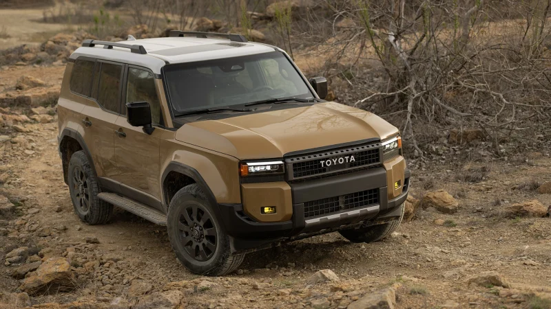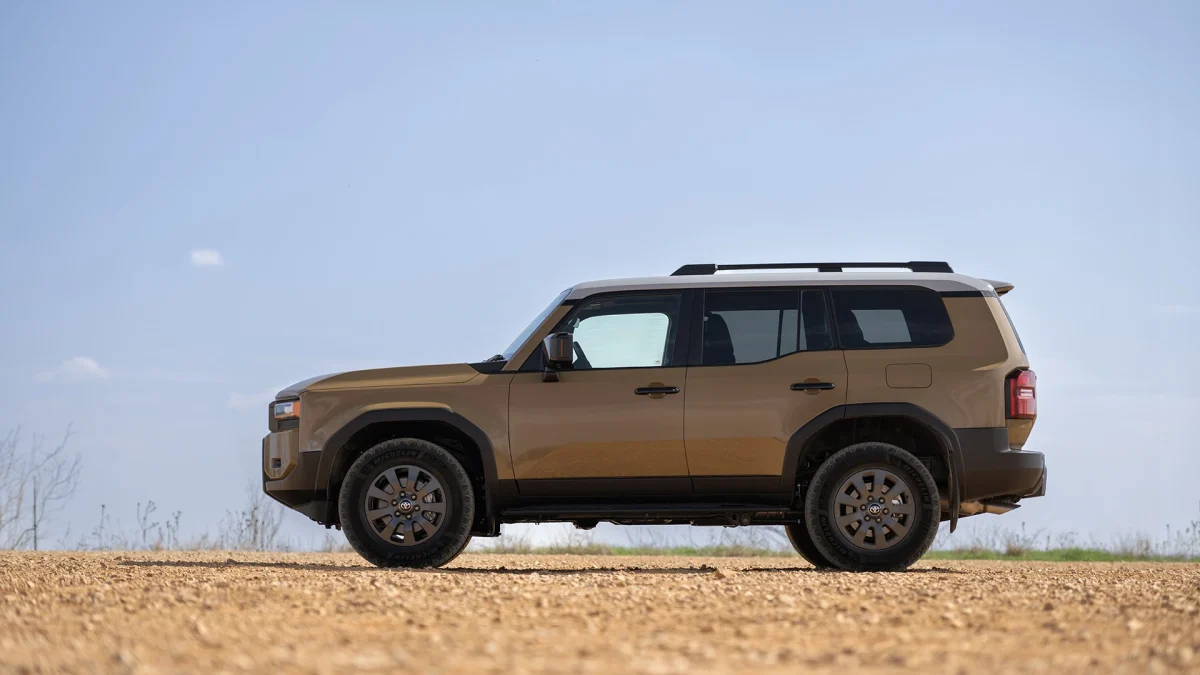 در سال ۲۰۲۳، تویوتا با معرفی نسل پنجم این خودرو با کد سری ۲۵۰ برای مدل ۲۰۲۵، ترکیبی از طراحی کلاسیک دهه ۸۰ و فناوریهای روز را ارائه داد. پرادو جدید ضمن حفظ اصالت آفرود، چهرهای مدرن و امکاناتی کاملاً بهروز دارد. طراحی بیرونی آن با چراغهای مستطیلی، جلوپنجره عمودی بزرگ و سپرهای زاویهدار یادآور روزهای اولیه لندکروزر است. خودرو بر پایه پلتفرم جدید TNGA-F مشابه لندکروزر ۳۰۰ و پیکاپ توندرا ساخته شده که استحکام شاسی و کیفیت سواری را ارتقا داده است. با وجود افزایش جزئی ابعاد، پرادو همچنان در رده شاسیبلندهای میانسایز قرار دارد. فاصله زیاد از سطح زمین، گلگیرهای برجسته و تایرهای آفرودی بر ماهیت خالص SUV بودن آن تأکید میکنند. چراغهای عمودی در بخش عقب، درِ جانبی صندوق و حروف برجسته “LAND CRUISER” تصویری نوستالژیک به این مدل بخشیدهاند.